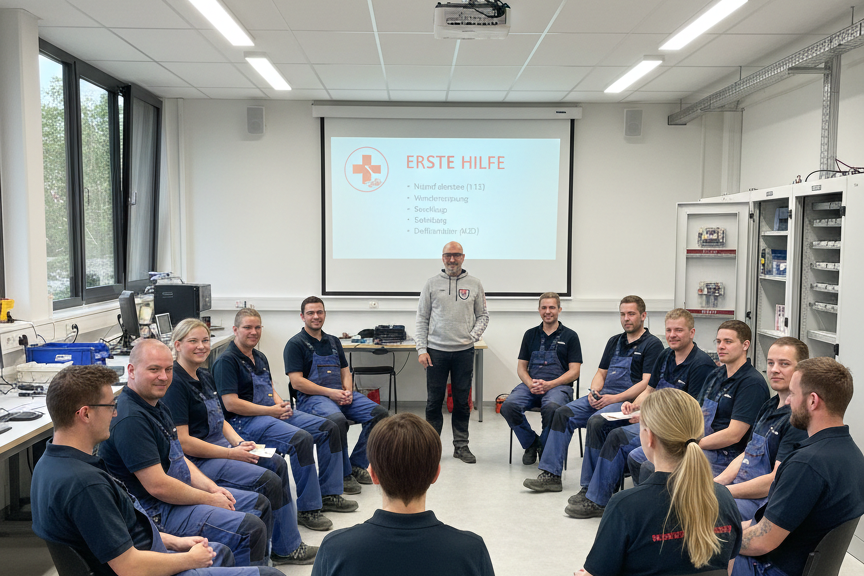 Neben der Grundausbildung ist gemäß DGUV Vorschrift 1 eine jährliche Unterweisung gesetzlich vorgeschrieben. Gerne übernehmen ich auch diese regelmäßige Auffrischung für Ihr Team.